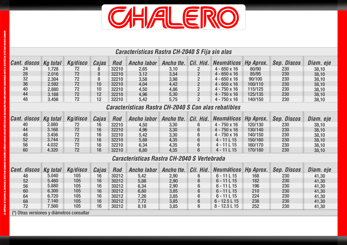 Diametro de discos: 24” / 26” (acero templado al boro)